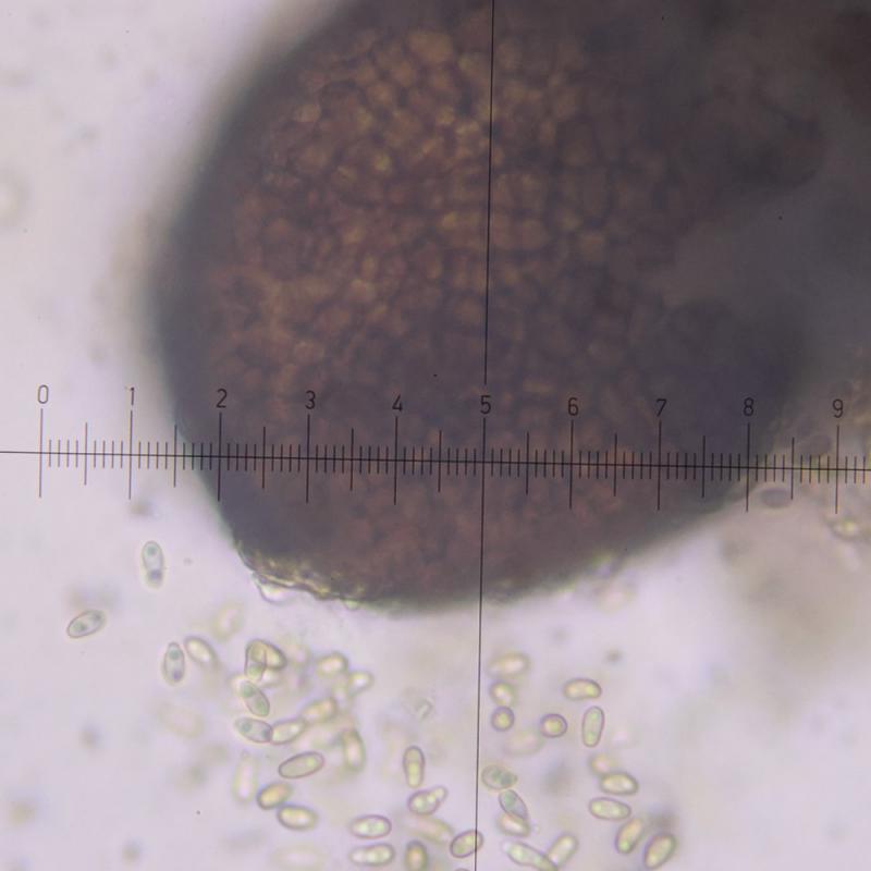 Host lichen was growing on basalt blocks near the waterline of a dyke. Perithecia mainly on the apothecia of the host. Conidia bigutate, ellipsoid sometimes with little deformations, measuring 7,5-8,5 x 3,0-3,5 ?m.