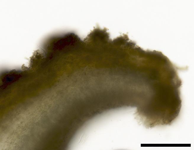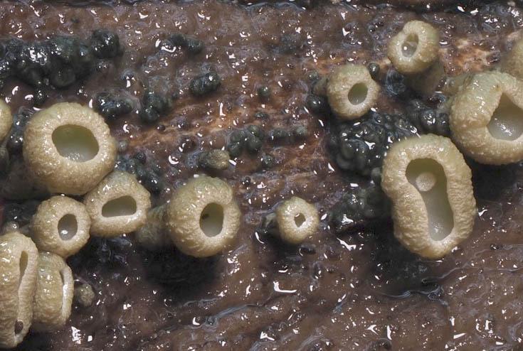 apparent associated anamorph forming small, dark, pulvinate growths at the base of apothecia (micrographs forthcoming).