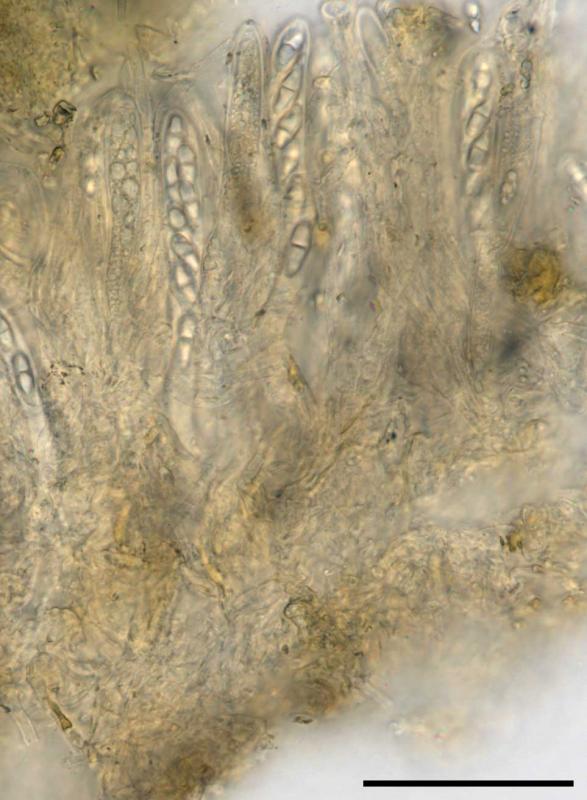 no spores observed outside of asci. dodgy in-ascus spore measurements:
