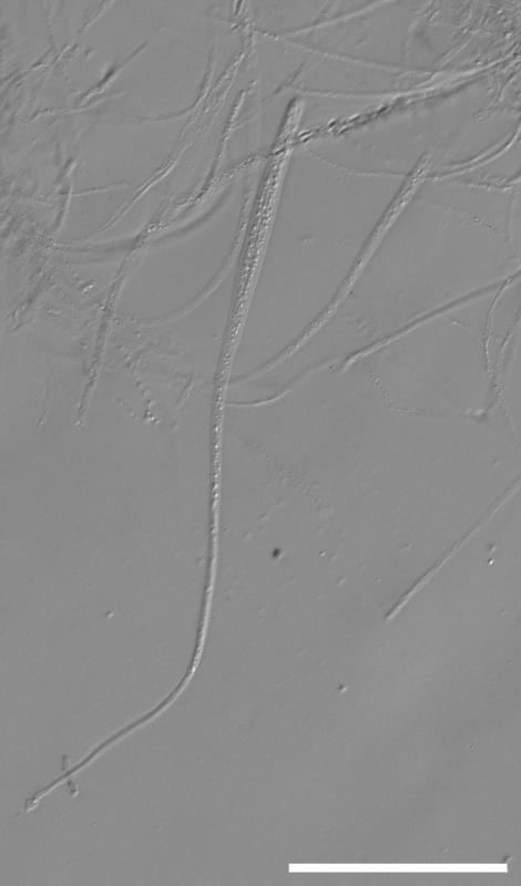 no spores observed outside of asci. inherently unmeasurable inside asci due to length and being densely intertwined.
