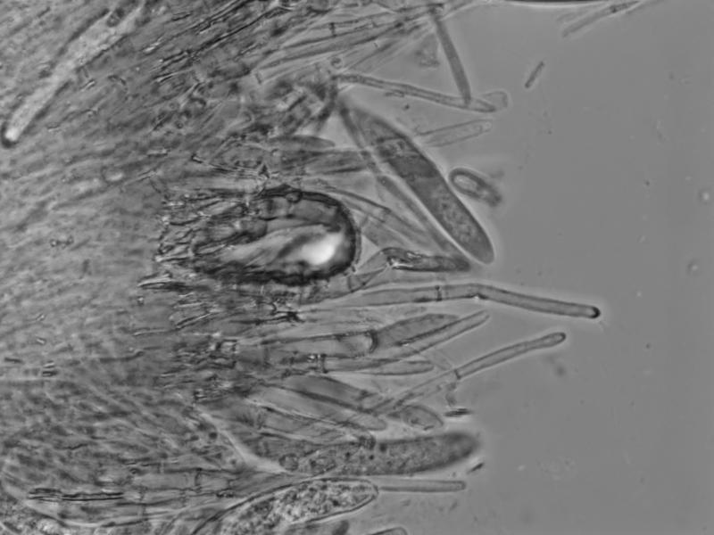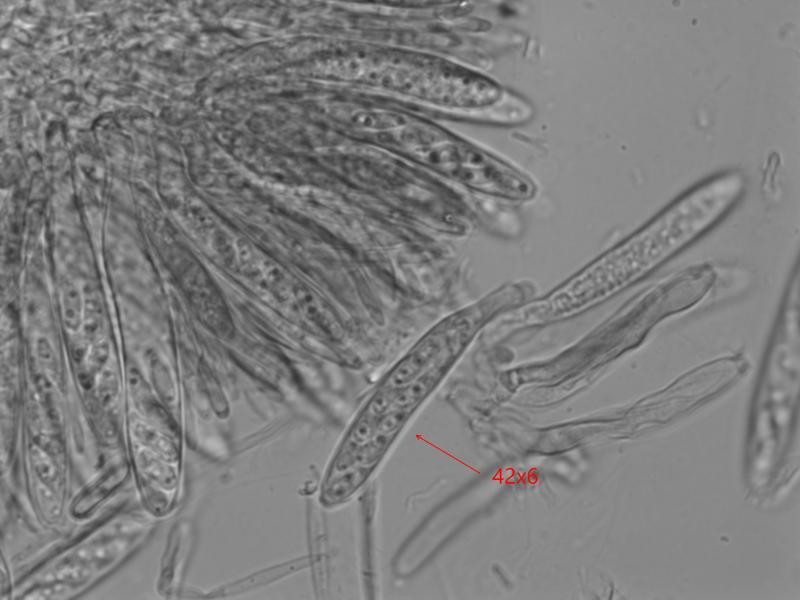 Asci measured 42x6µ, the spores were hyaline 6x2µ and contained a small guttule at both sides. Hairs were also hyaline, smooth,cylindric, septate and measured 55-60µ.