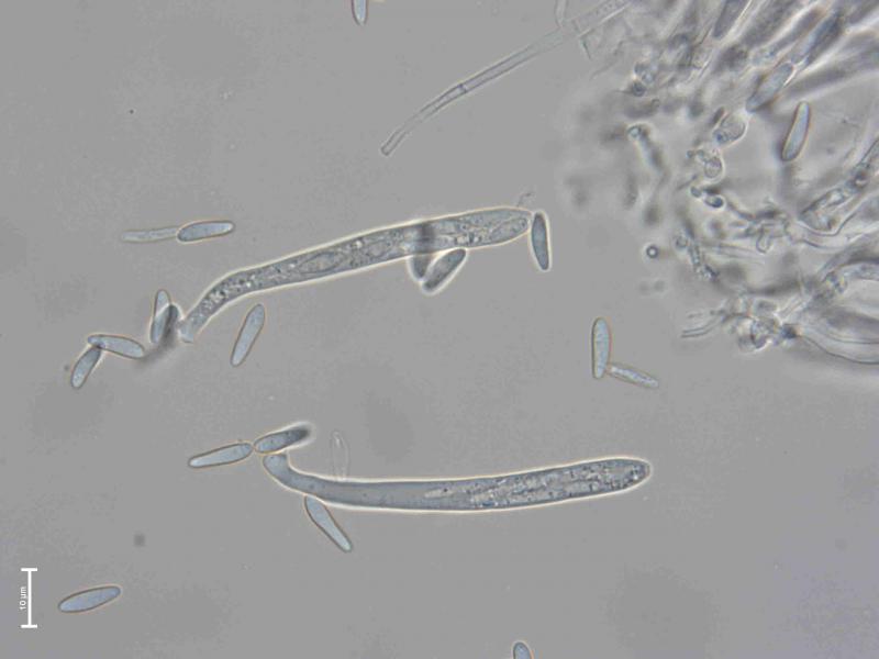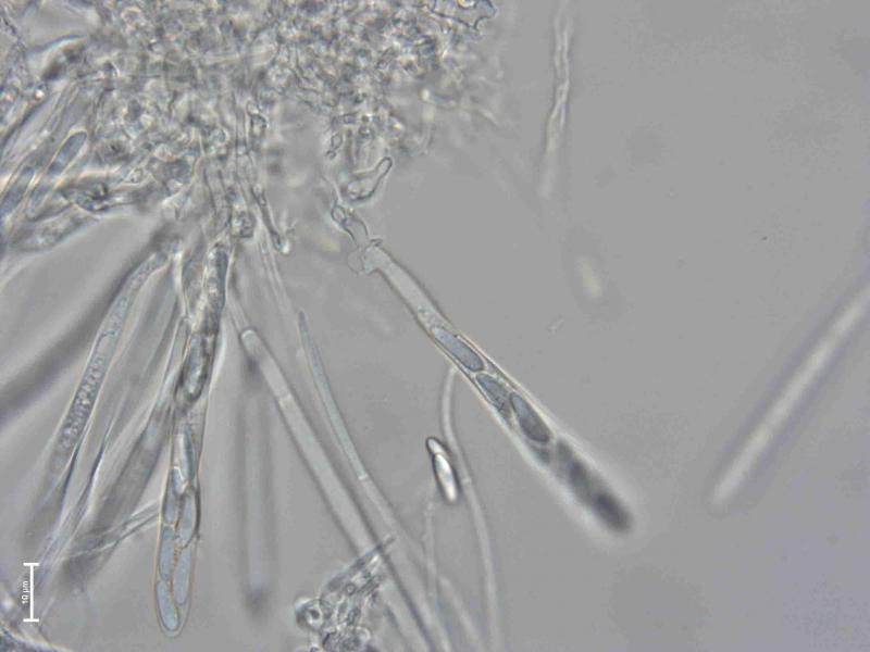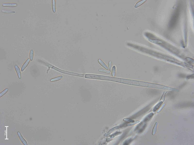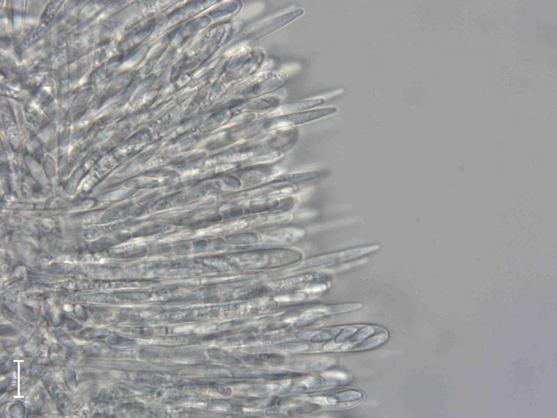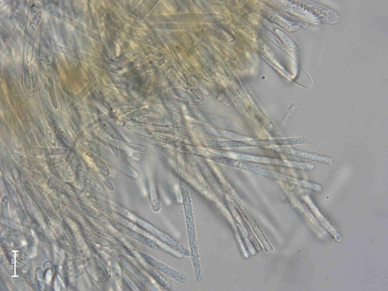 Paraphysis protruding 10-22 µm ; narrow lanceolate with width 3,8-4,4 µm
