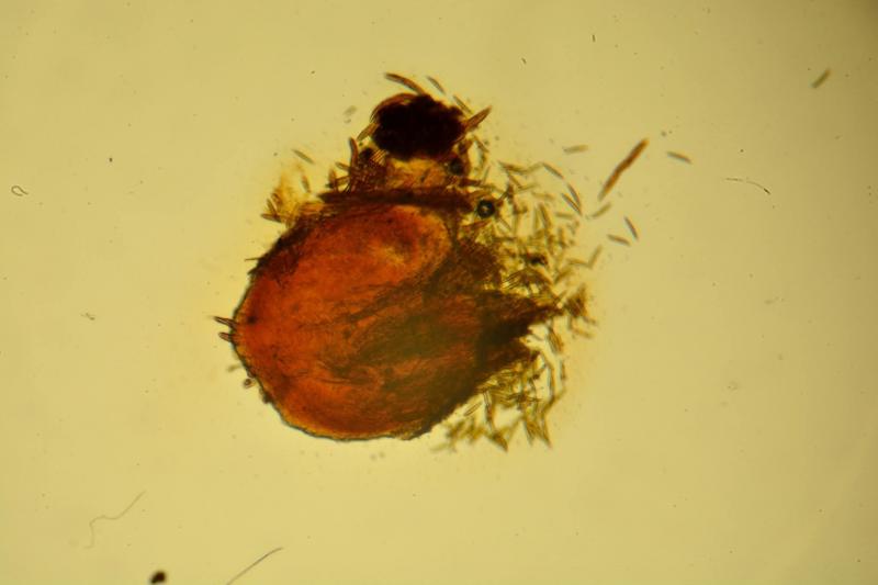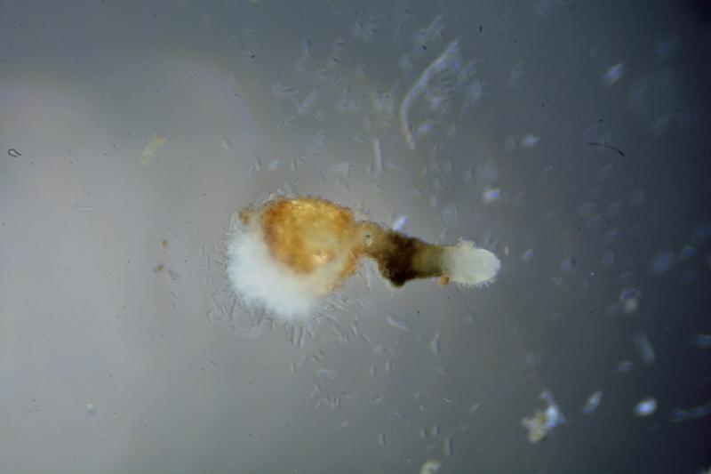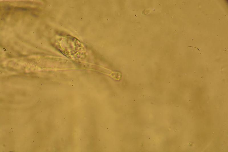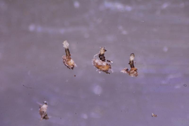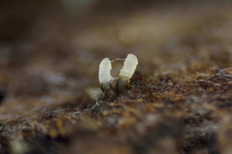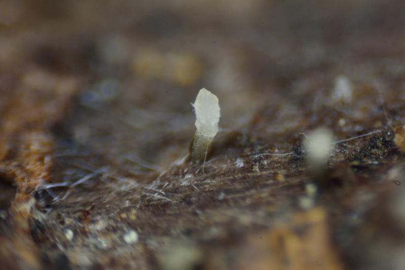 Specimens less than 1 mm long, growing on an unidentified dead branch, collected two months ago in a riverside area and kept in the refrigerator ever since.