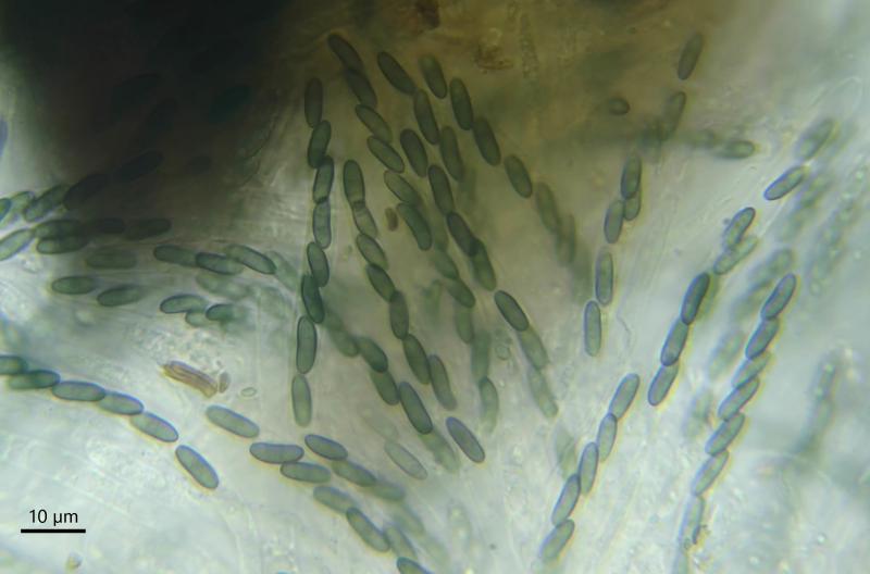 Asci: 8-spored, IKI– in both Melzer's and Lugol's reagents, in Baral's reagent finely blueish