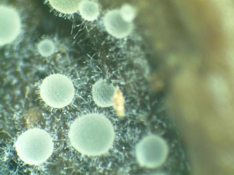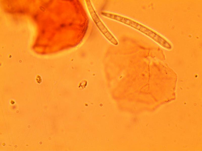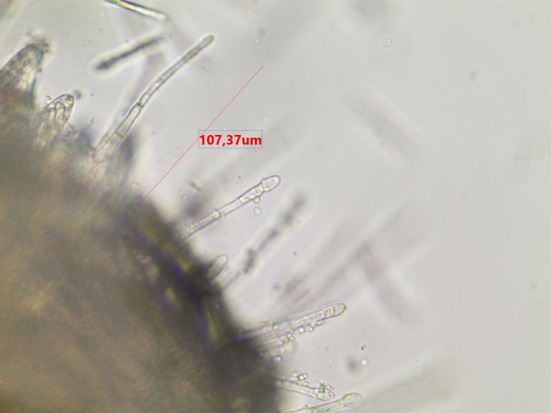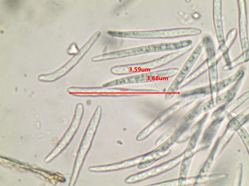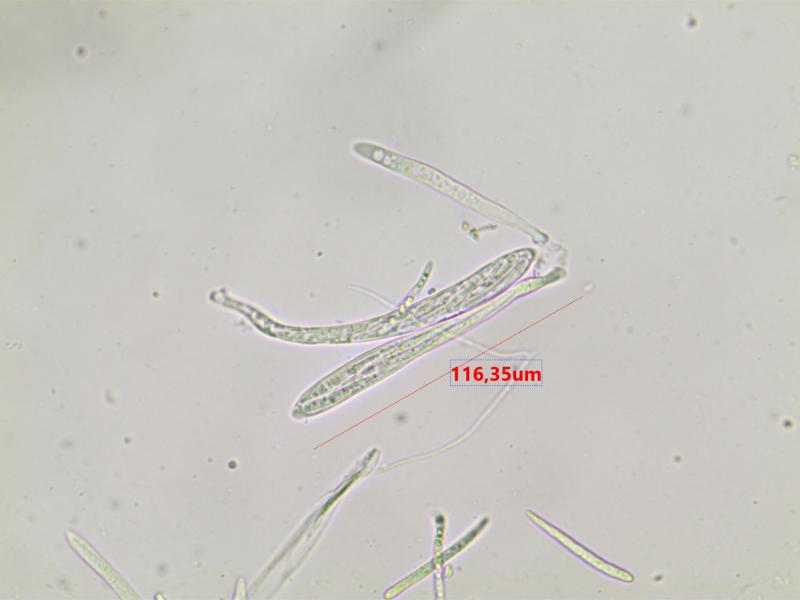 Trouvé sur bois de feuillu très dégradé cette arachnopeziza, qui ressemble à A. delicatula des dossiers de Zotto. Les spores plus courtes et plus larges m'ont l'air caractéristique. (Caluler le nombre précis de septa m'a été impossible)