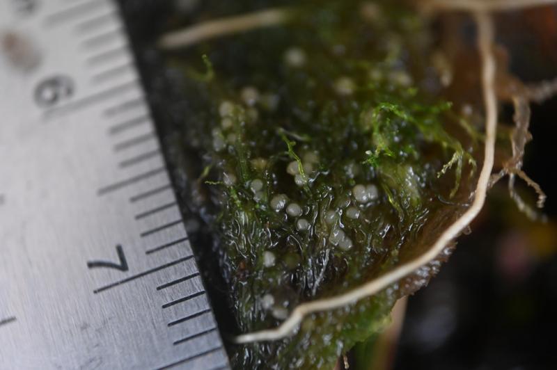 Los apotecios eran blanquecinos y los más grandes de aproximandamente 1 mm de diametro, desarrollandose sobre una hepatica del género Telaranea, probablemente Telaranea pseudozoopsis.