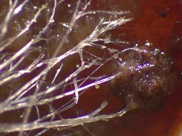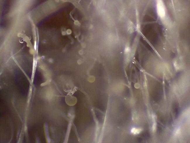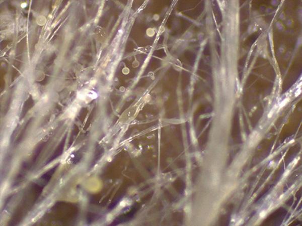 Je n'ai pas de réponse précise à te donner mais il me semble que tes photos montrent 2 choses différentes : un champignon hyphomycète d'une part (les filaments) et qqch de nature végétale , la dernière image micro montrant une structure de cellules végétales.