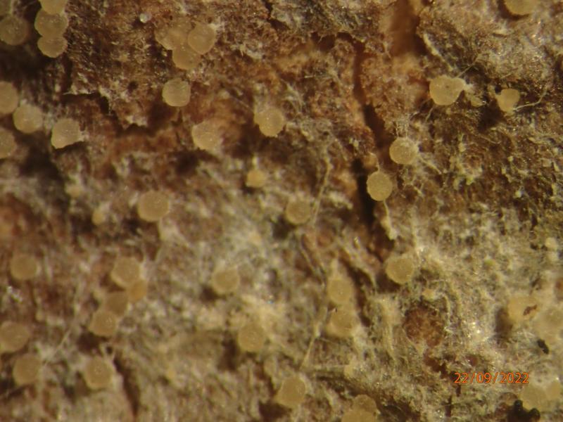 Apothecia ca. 1 mm in diam. Somewhat downy on the