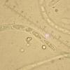The asexual morph forming slightly barelshaped arthroconidia is a Hormodochis, probably H. melanochlora.