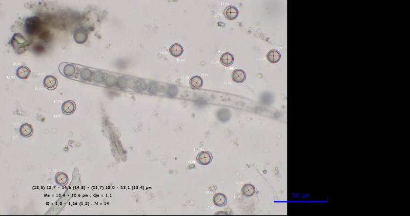 Necesito ayuda para la identificación de esta Tarzetta. En principio pensé en T. oblongispora, pero la Q esporal, parece que no cuadra mucho y se quedan algo pequeña.