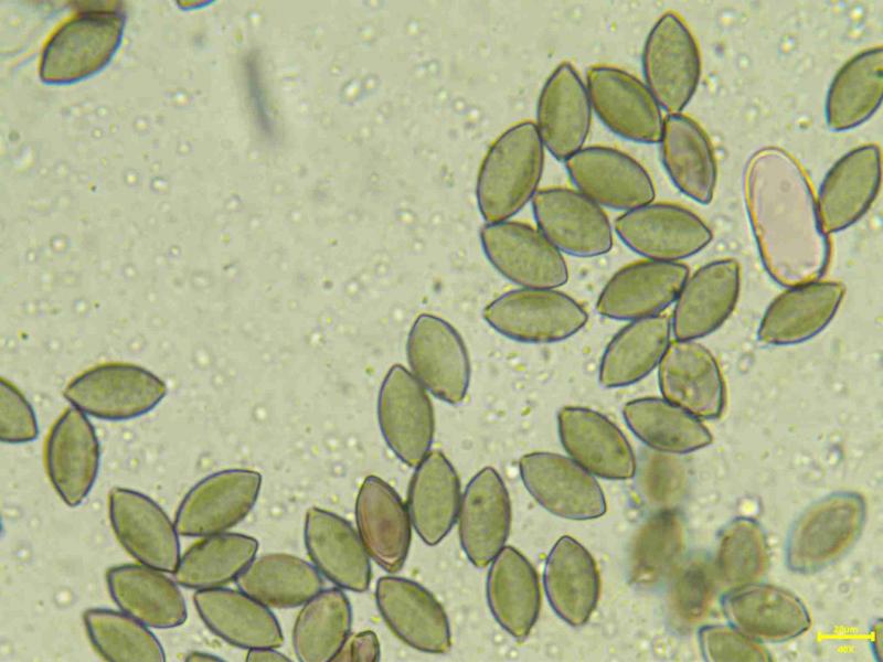 Bonjour amis mycologues,Trouvé sur moquette de chevreuil, périthèce d'environ 550x450 µm difficile a préciser vu q'il est entouré d'un abondant réseau de poils. Spores lisses, ovoides vert-pale (avec 2 pores germinatifs ?) 13.6 x 7.4 µm Q=1.8 N9.