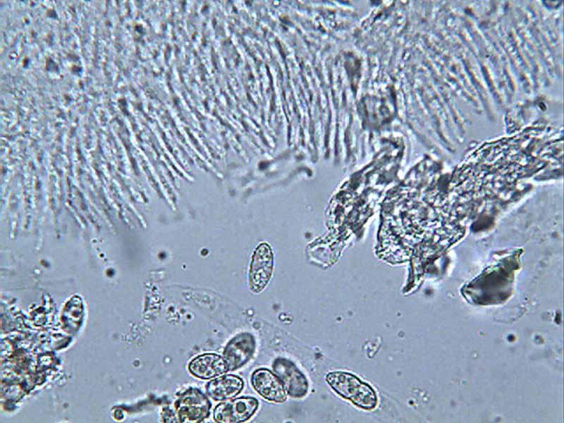 The spore are ellipsoid, smooth and measure 7-8*3.5-4.5 (in ascus), no spores where observed outside of the ascus, suggesting a still immature specimen.