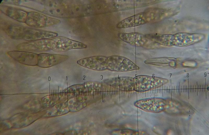 | Remarque | Cette récolte a été faite en milieu aquatique (Ruisseau de la Maille) où l'espèce peut aussi se développer. Contrairement à la récolte terrestre d'Alain Gardiennet (AG090706), la couleur autour des ostioles tire plutôt vers le brun-jaunâtre. |