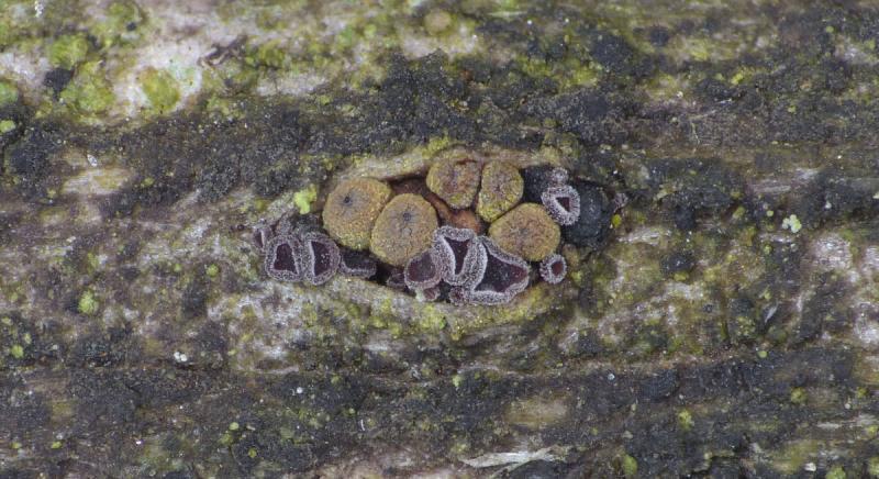 | Remarque | Sur branches mortes de Berberis vulgaris, en pelouse sèche. En compagnie de Thyronectria lamyi, parfois en mélange (voir photo 2). |