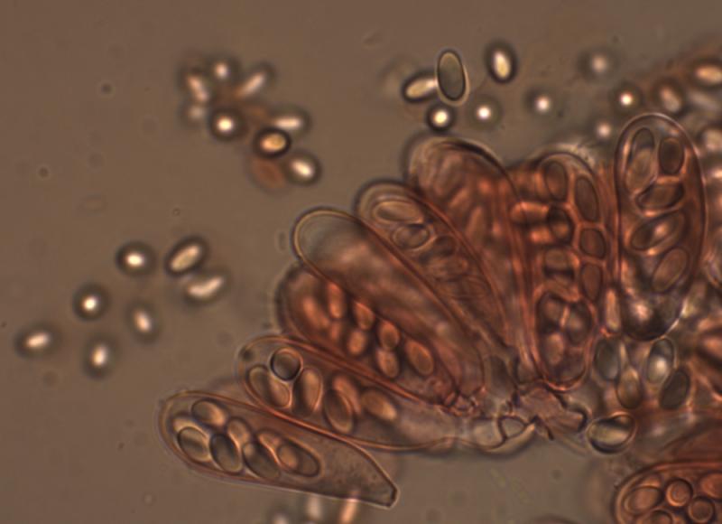 | Remarque | Apothécies minuscules. Spores fixées sur une substance amorphe qui a tendance à se dissoudre après éjection. Couleur rouge = rouge congo SDS. |