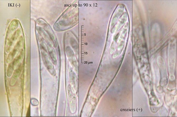 Basal excipulum of a texture angularis is olivaceous brown, not hyaline. Marginal hairs are very indiferenciate and colourless.