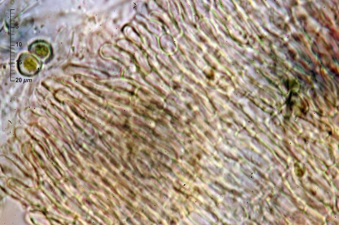 Ascospores are filiform and up to 3-septate at maturity. Asci IKI b, croziers unknow. The paraphyses have allways some refractive vacuoles at their apices. Excipulum maybe with textura porrecta.