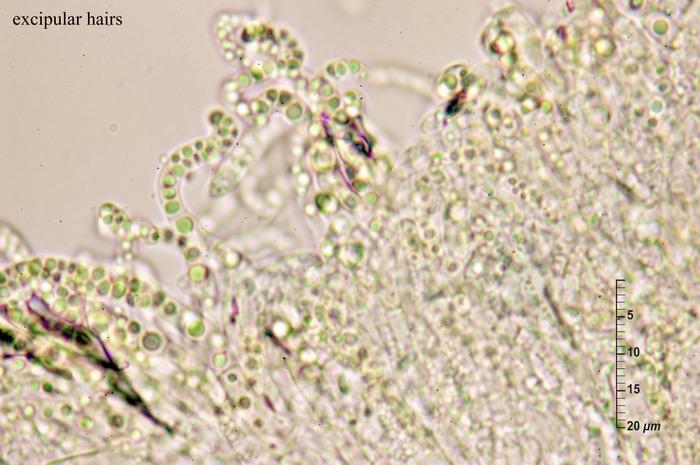 I need your help with these minute (up to 0.4 mm), gregarious, superficial, pubescent, very narrowly sessile, subturbinate, bright yellow ascomata that grew on the decaying flower covering structures (calyx) of Camellia japonica at the sea level.