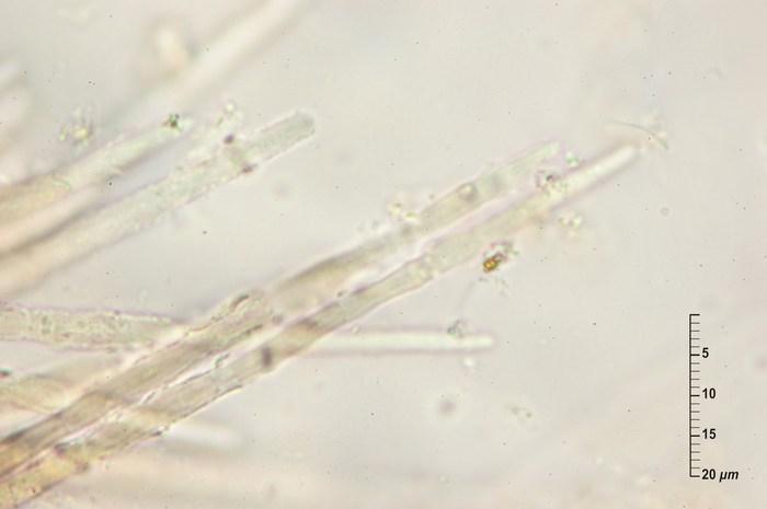 it is a good idea to compare this with my Lasiobelonium, thoughthat has the hairs longer and more flexuous, and the granules on them disappear completely in KOH, unlike your fungus.