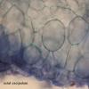 Asci whit conical apices IKI b not of the Hymenoscyphus type, close to the Calycina type, 8-spored, with croziers. The ascospores are clavate with a low lipid content. Paraphyses without conspicuous refringent Vb's. The excipulum is made by an angularis-subglobulosa hyaline texture becoming prismatica in the flanks and towards the margin. Hyaline short clavate hairs make the apothecial margin.