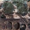 The blackish multiperitheciate stromata are crust of 50 x 25 mm and 1 mm thick covered by a mass of olivaceous fresh discharged ascospores. Ostioles conspicually papillate. The perithecia are ellipsoid and 0.45-0.70 mm long. The tissue beneath the perithecial layer is whitish, soft,extending into the wood.