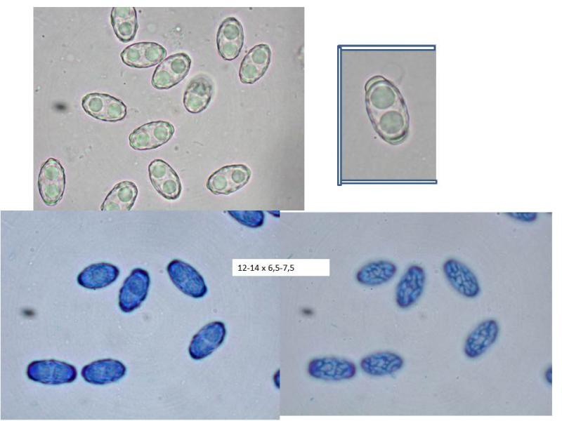 Les dimensions sporales notées sont inférieures à celles de Patrice pour la largeur , mais le réseau et la biguttulation des spores semblent semblables.