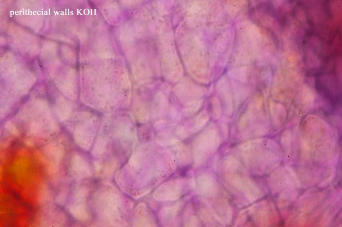 These small orange/reddish perithecia are situated under (in small clusters on the bark of Acer) or on the thallus of Frullania dilatata (it's very difficult to see). The perithecial necks have some rigid and hyaline 'hairs' and the spores become brownish with striate verrucose walls.