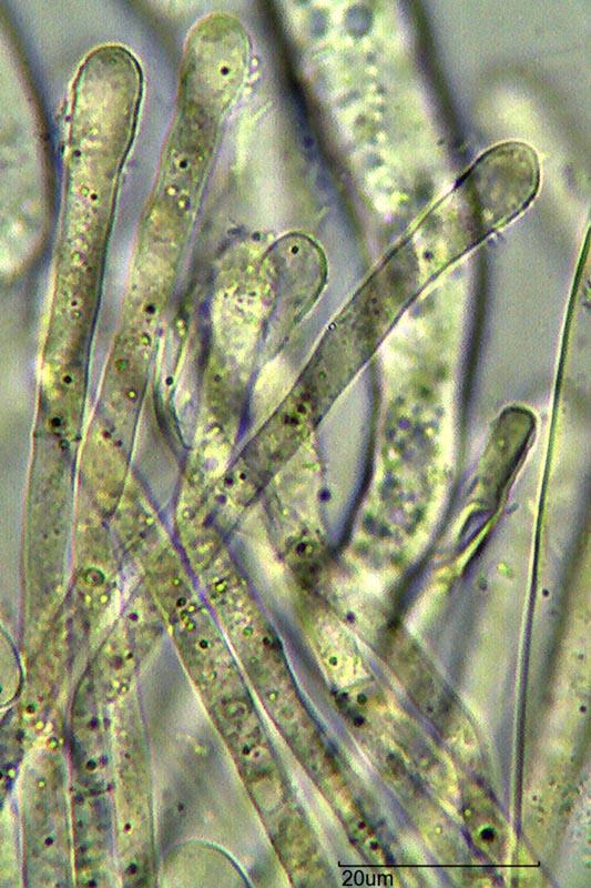 En las células del excípulo ectal he visto ¿pigmentos, cristales?, no se, adjunto foto.
