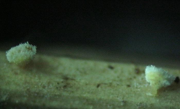 por células globosas y subglobosas. Llego a Lachnum morthieri o Capitotricha bicolor........