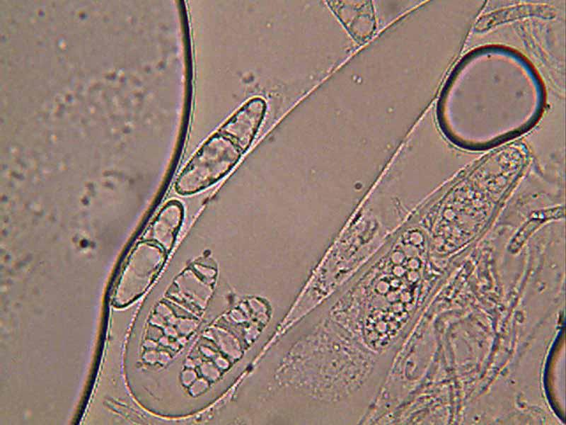 He estado haciendo unas preparaciones de distintos ejemplares y veo o muy maduras las ascas y esporas o completamente inmaduras.