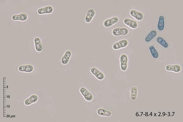 These small, superficial, iregular to orbicular, whitish to ochraceous patches, 10-15 mm in diameter, were found growing on a thin, white, poorly developped subiculum on a small branch of Fraxinus excelsior lying on the ground. Any polyporaceous fungus were under the somewhat fleshy stromata up to 0.5 mm broad, KOH-negative, that contain several ostiolate, papillate, perithecia up to 0.2 mm high.