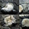 Apotecios surgiendo de la corteza, de 790 a 930 µ de color crema y textura algodonosa