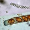 Ok para Peziza succosella pues... Pero la penúltima foto micro donde se ven las bases de dos ascos pleurorrincos... se corresponde al ejemplar oscuro, ¿no? Claramente una especie distinta... P. saniosa reseca tal vez... No puede ser la P. succosella por tener un distinto patrón ornamental, distinto patrón de gútulas, y también ascos pleurorrincos (si me confirmas que la foto es de ese ejemplar...)