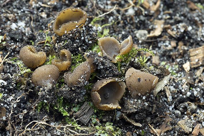 It doesn't seem to match with Peziza varia s. lat. or Peziza hortensis.