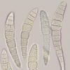 I have found small, rounded, gregarious, non-stromatic pseudothecia, semi-immersed in the bark of branches of Arbutus unedo still attached to the tree, revealing only a papillate ostiole which is usually broad and laterally compressed. The caudate ascospores are hyaline or light brown at maturity, smooth and they have many transverse and occasionally some vertical or oblique septa, they do not appear to be surrounded by gelatinous sheaths but seem to have inconspicuous conical polar appendages. The base of the asci is twisted and thinned towards the end.