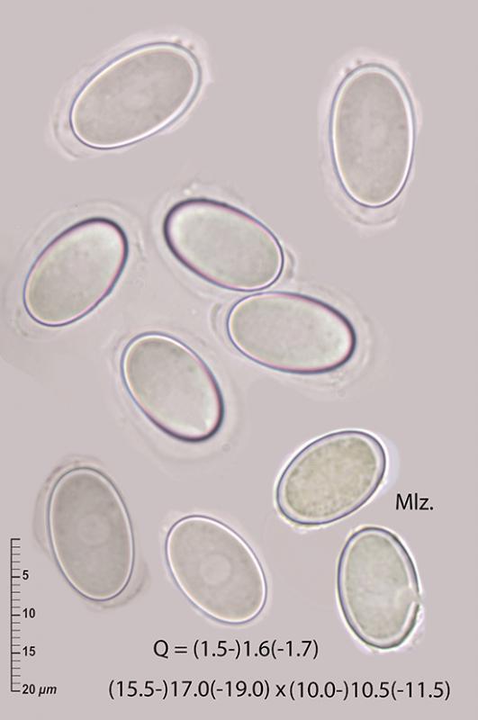 The elongate ascospores do not seem fit well with the broadly ellipsoidal or subspherical ones described by Marchal for Lasiobolus (Lachnea) lasioboloides, but the absence of septa seems more characteristic of Lasiobolus than of Trichobolus deextrinoideosetosus.