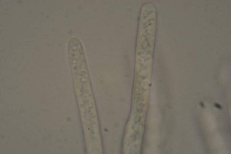 Está aún muy joven, Héctor. Deberías incubarlas en una cámara húmeda o intentar recoger más adelante material más maduro. Solo puede verse bien el aparato apical de los ascos, que efectivamnete es del tipo Sclerotinia.