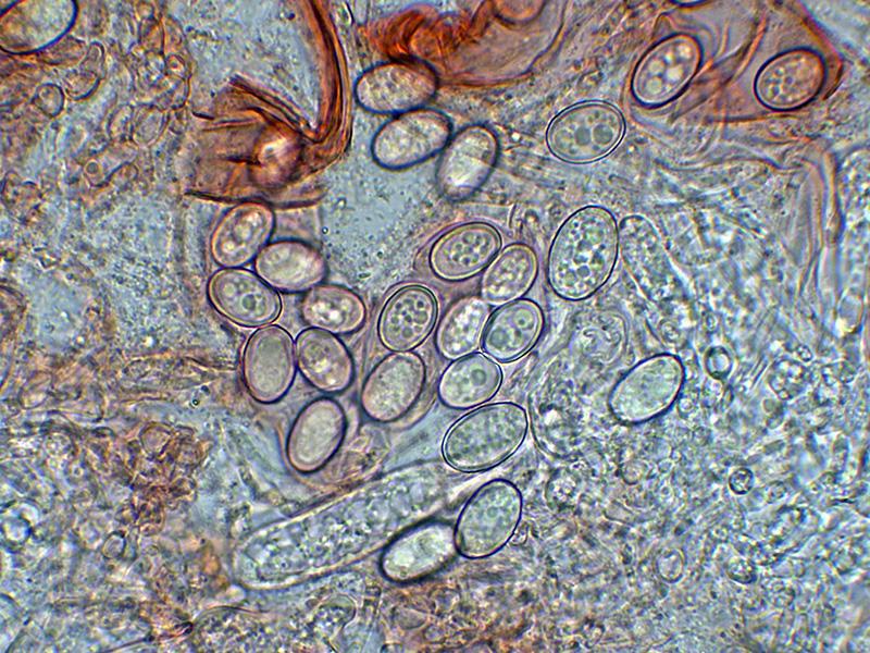 Lo curioso del caso es que cerca de los ejemplares del estudio, con unas esporas subglobosas encontré otros apotecios muy precidos, pero de menor tamaño, que atendiendo a la información de los documentos de los enlaces que me has mandado, parece encajar como un guante con la Boubovia subprolata, en el documento se citan unas medidas esporales para la Boubovia subprolata de (9,5) 10-12,5 (13,5) x (9) 9,5-10 µm. y en mi estudio sus esporas subglobosas medían (8.6) 9 - 10.7 (12,3) × (7.5) 8.6 - 9.6 (10) µm.