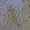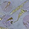No aprecio en las esporas del enlace ninguna vaina, les sucedería lo mismo que a mí, pero de conseguirlas probaré con el Azul de Lactofenol.