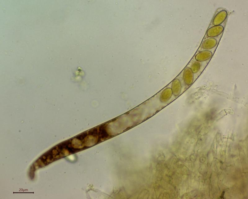 Hello forum,another member of the Pezizaceae not clear to me is this collection. In the field and for a while under the microscope I thought it's P. varia, but the ascospores are still a bit large: 16.7–18.3 × 9.7–10.6 µm, Q = 1.64–1.8; N = 55 (the sporeprint in water). Smooth surface, no LBs, no BSG.